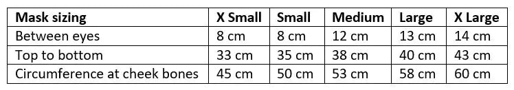 Οι μετρήσεις είναι κατά προσέγγιση, καθώς οι μάσκες είναι χειροποίητες στις ΗΠΑ. Δεν είναι απαραίτητη η στενή εφαρμογή τύπου συμπίεσης για να είναι αποτελεσματική.