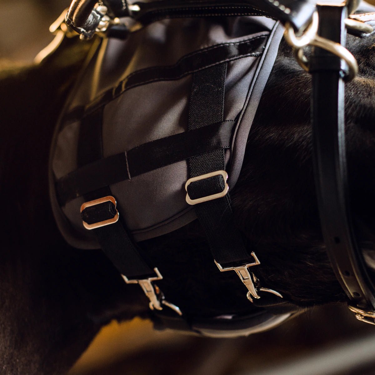 Θεραπευτική μάσκα Fenwick χωρίς αυτιά με υγρό τιτάνιο για να βοηθήσει το άλογο να χαλαρώσει και να συγκεντρωθεί. Ιδανικό για χρήση σε αγώνες.
